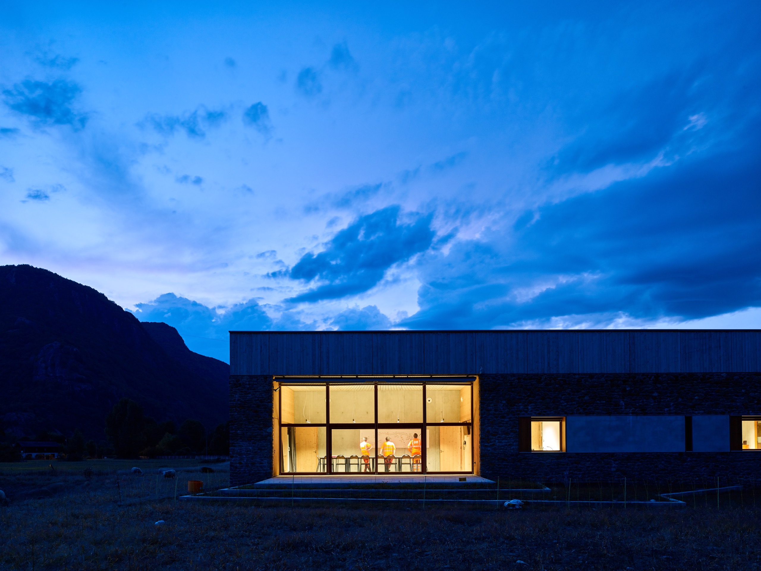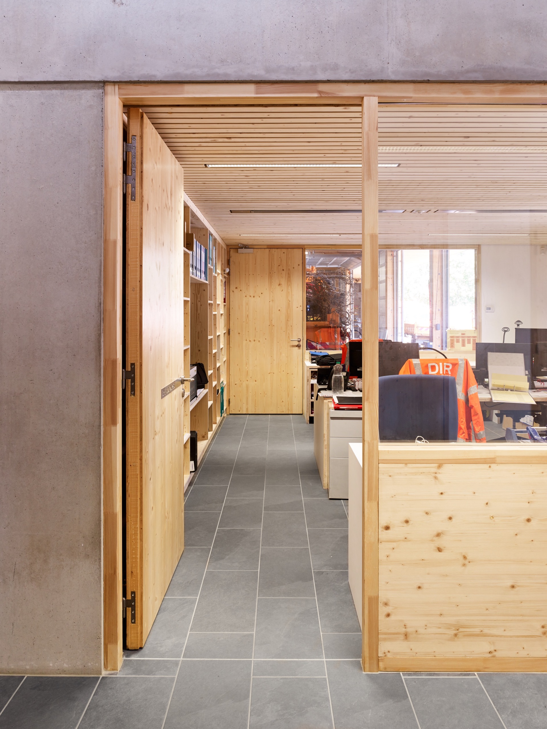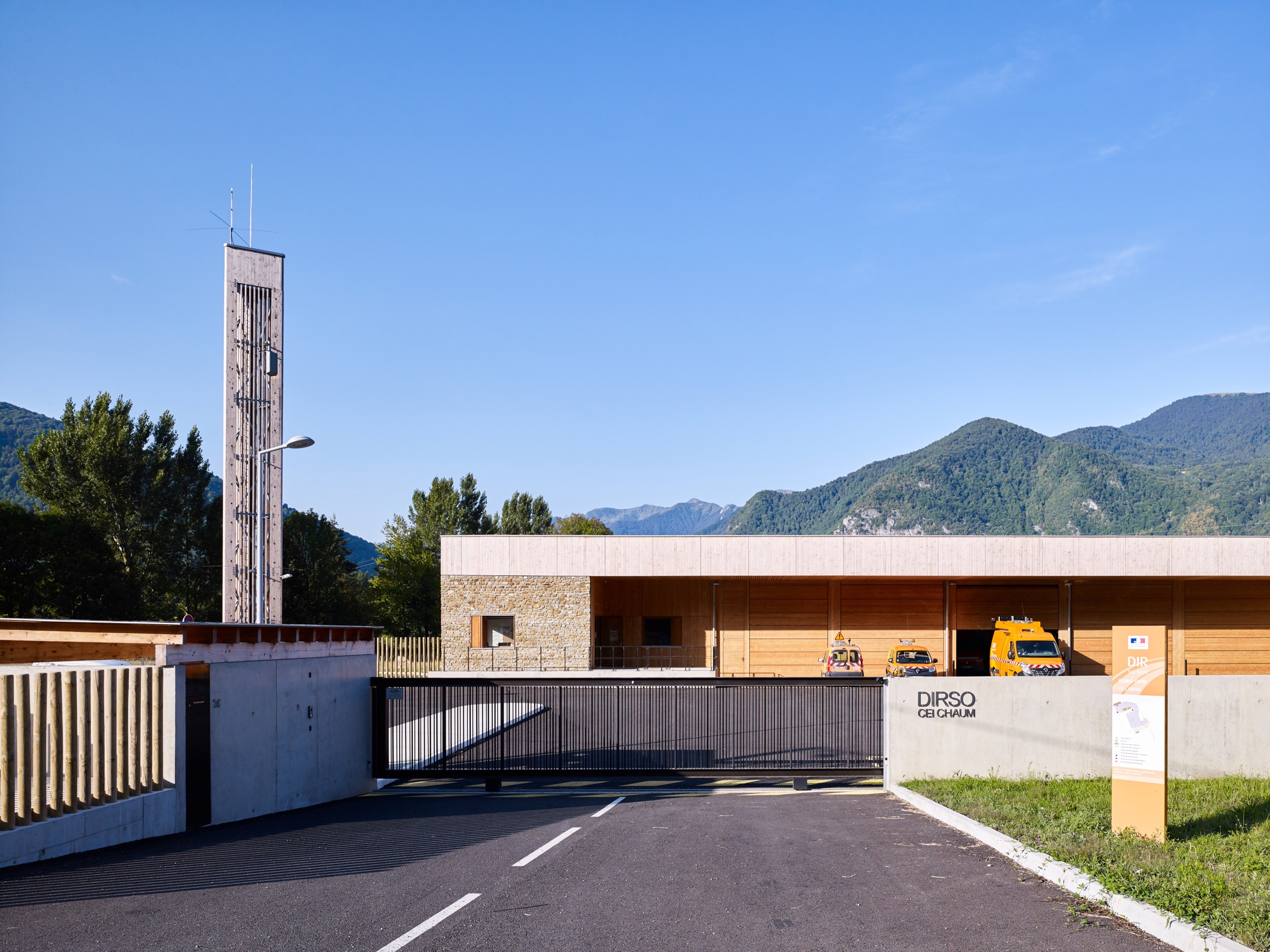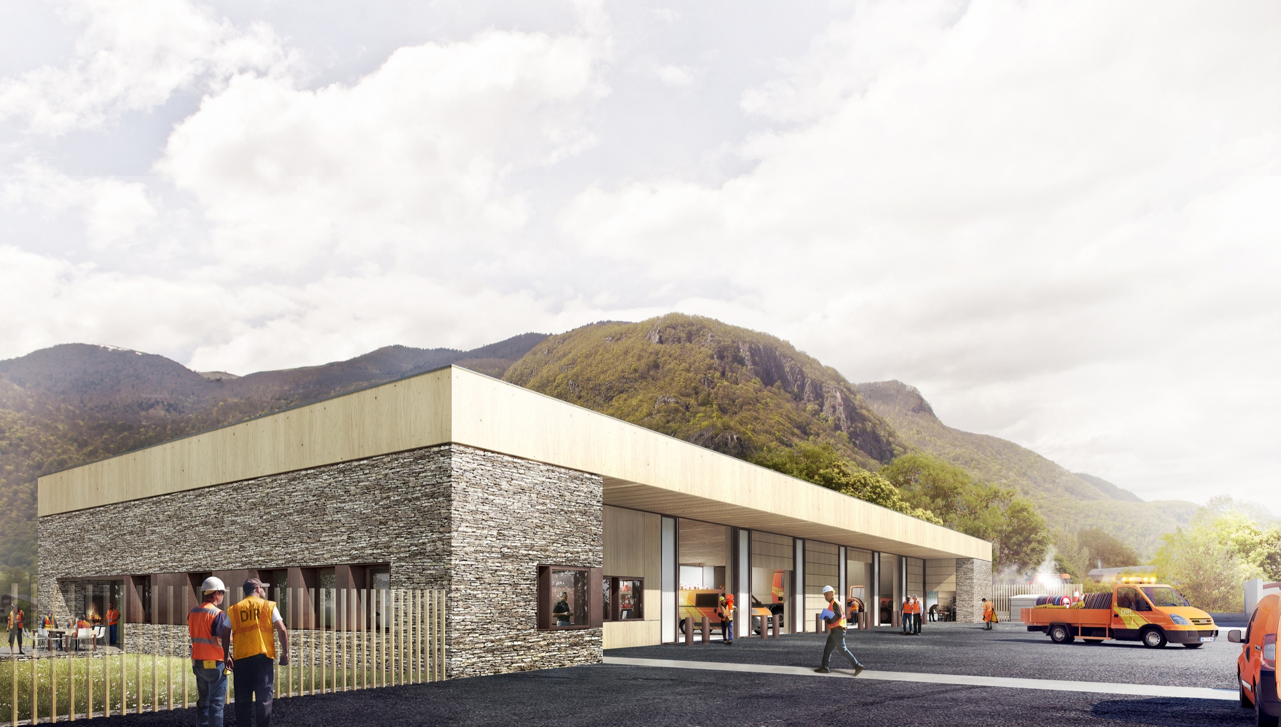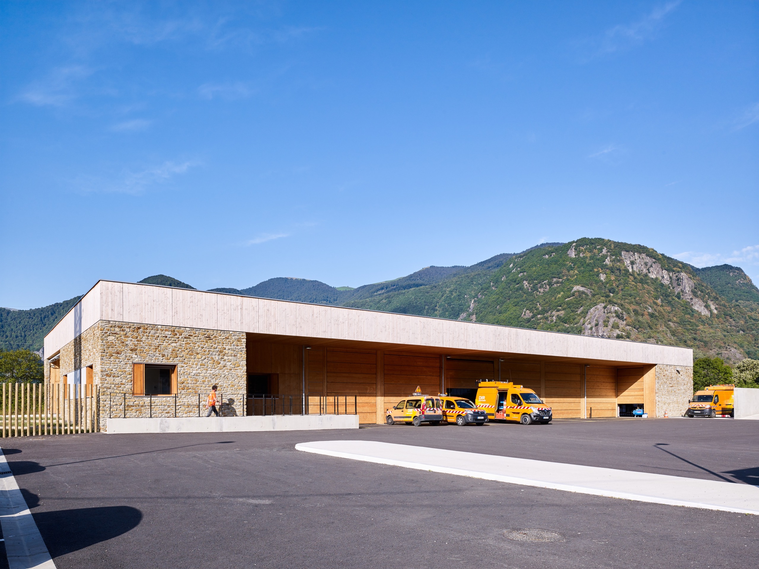 Cet équipement est pensé comme une extension du domaine de la route pour donner l’idée qu’il est à son service et pour permettre aux passants de voir le centre en action : les hommes s’affairer autour des véhicules, charger le sel, laver les camions après intervention…