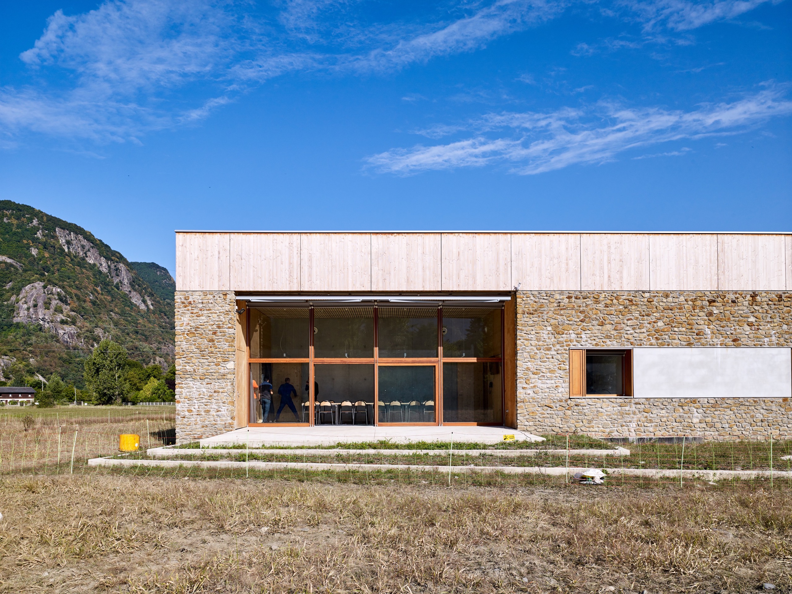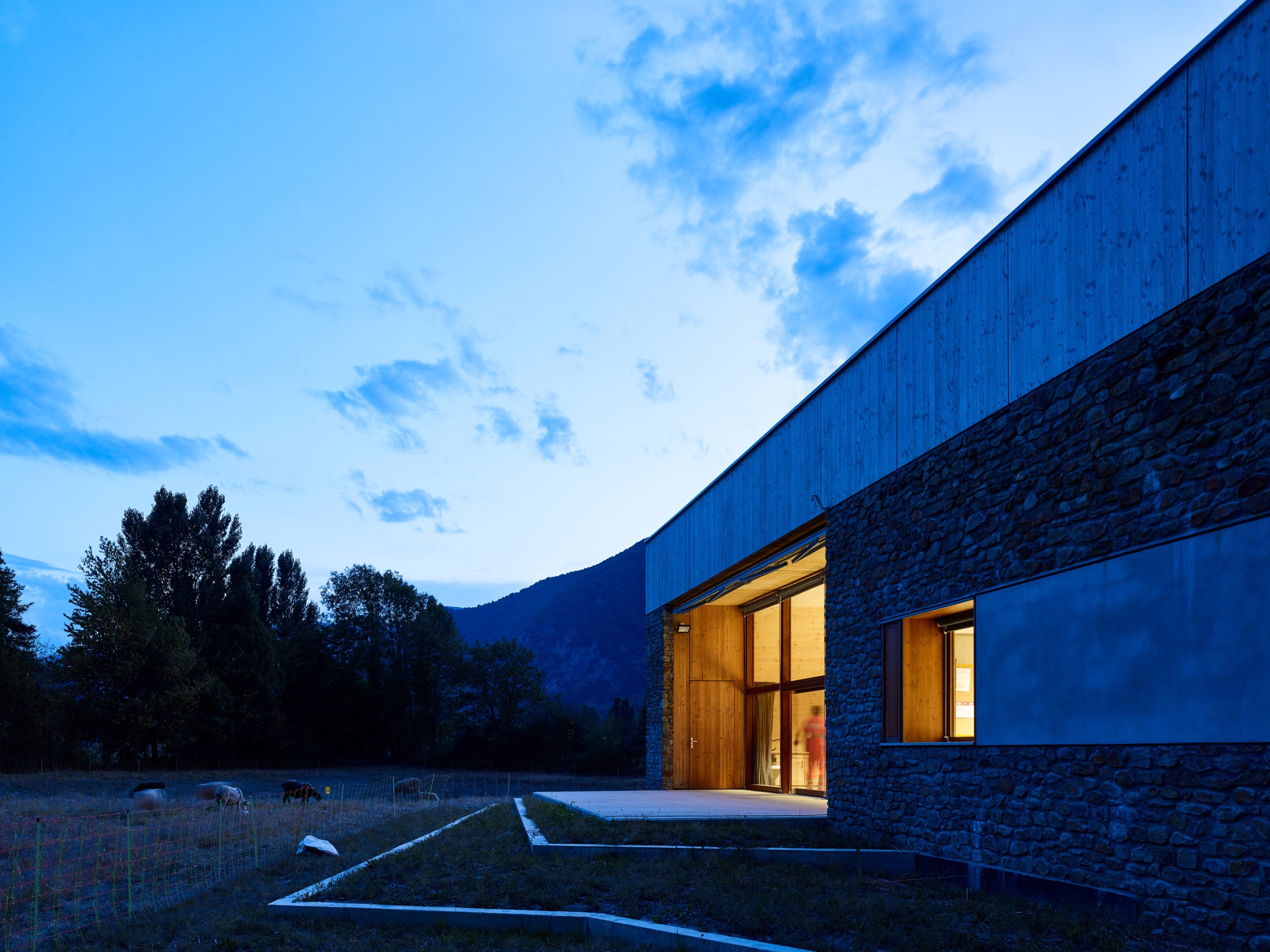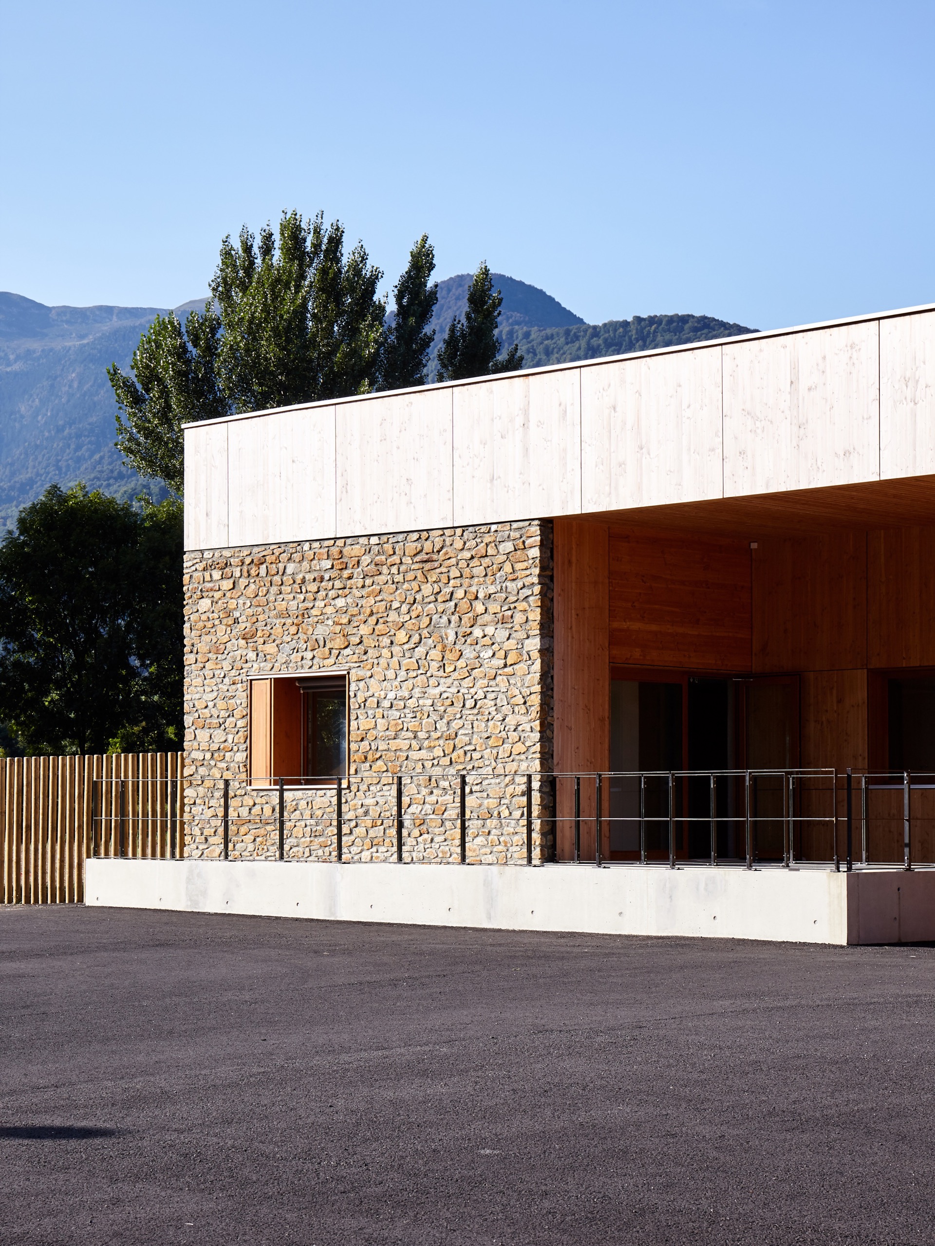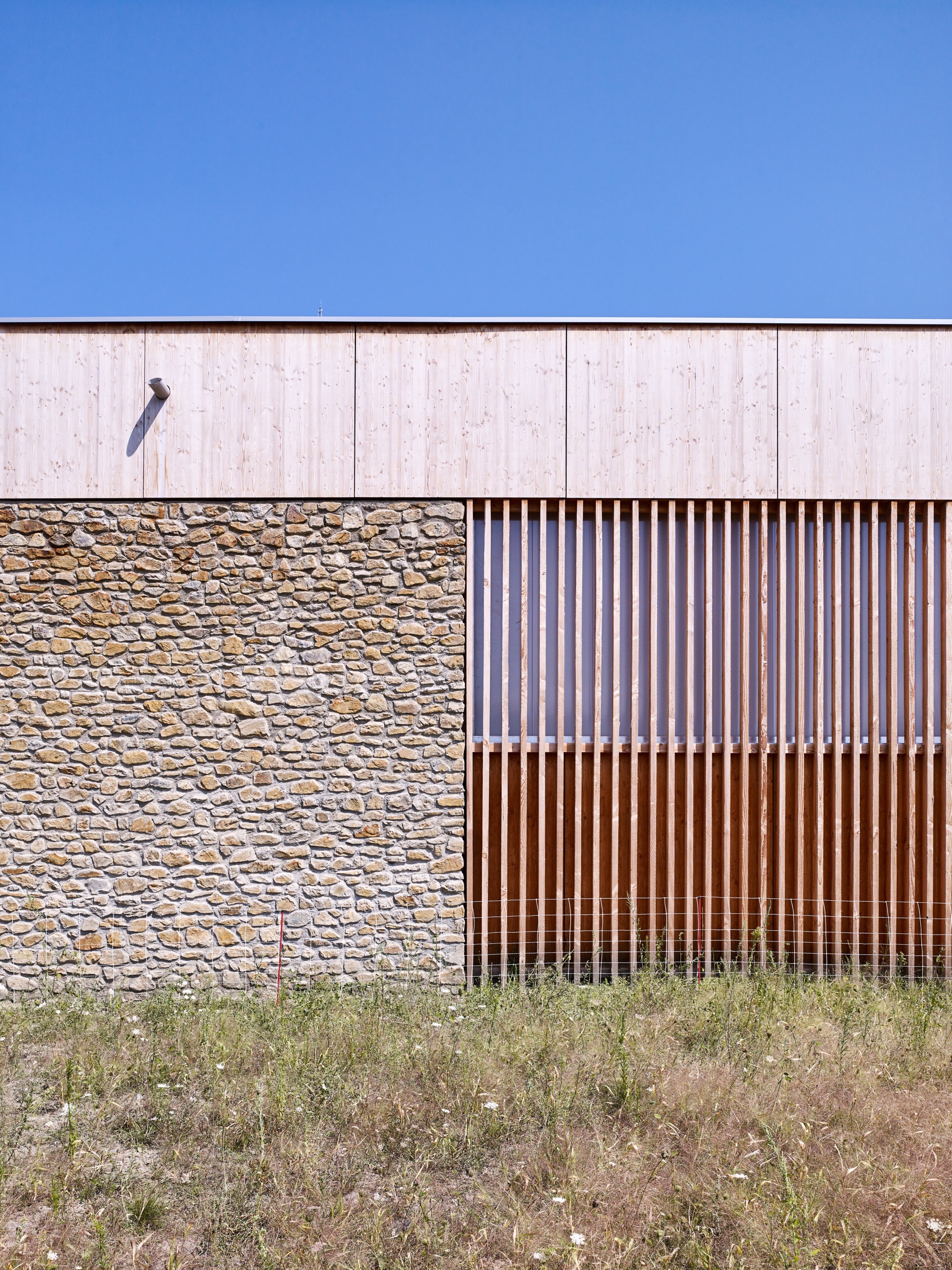 – Des matériaux naturels : la pierre et le bois utilisés de manière contemporaine et faiblement transformés, comme ancrage du projet dans son paysage.