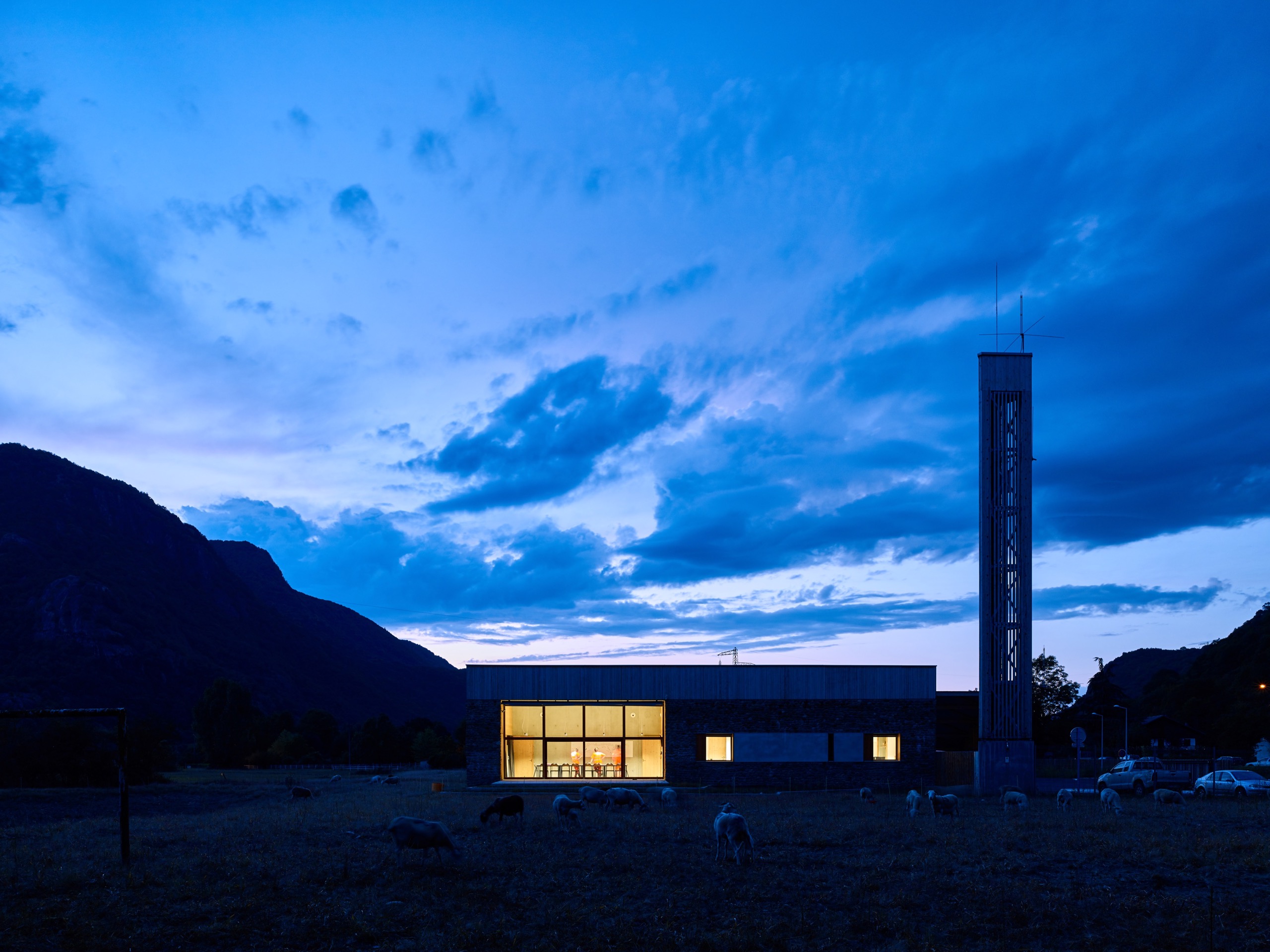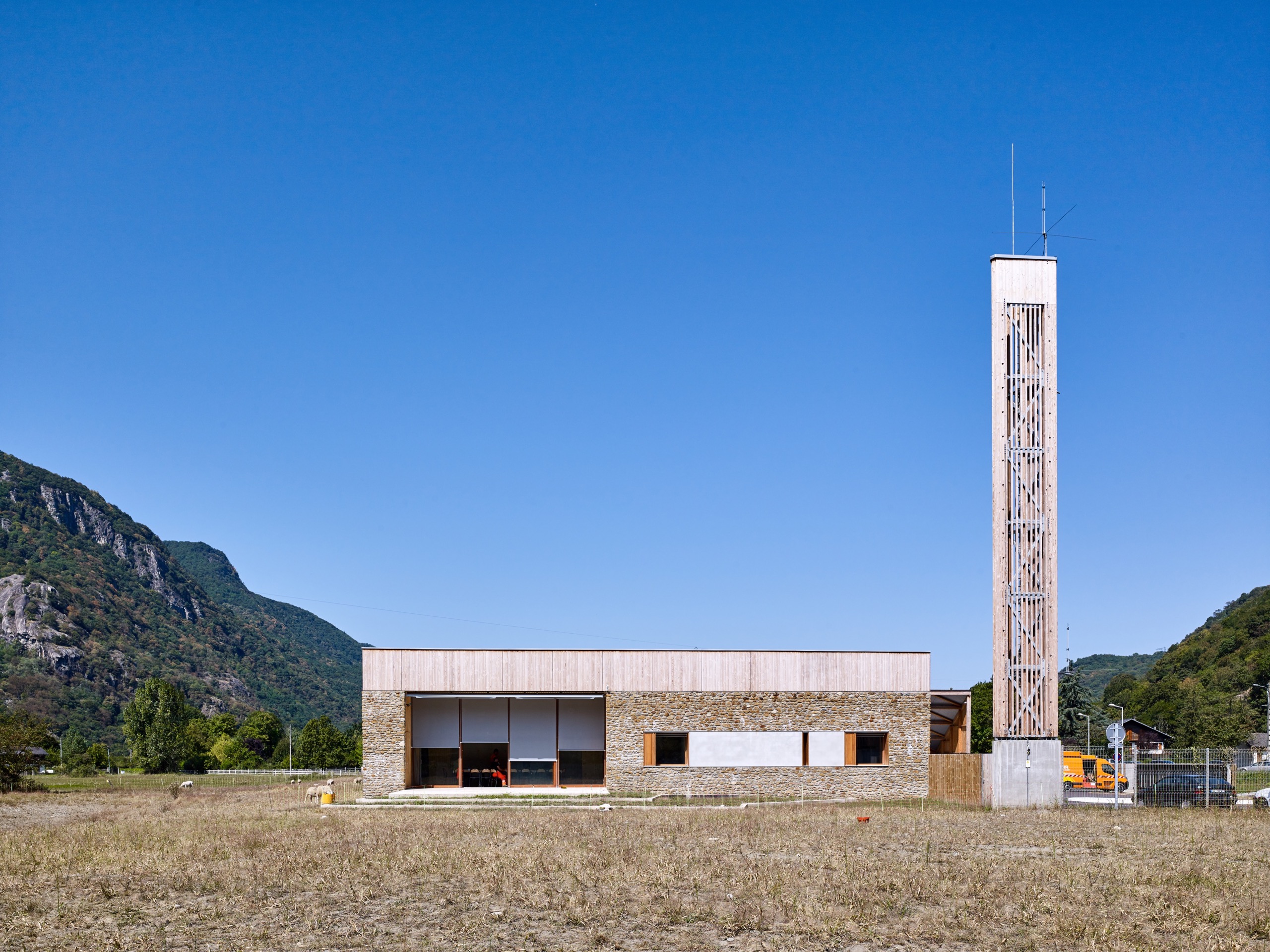 A Chaum et dans les villages avoisinants, les tours de guet médiévales s’assemblaient en réseau pour prévenir les habitants des dangers. En rappel à ces dernières, nous avons conçu une tour de radio dont la structure en bois s’inscrit comme un repère dans le territoire, emblème du CEI.