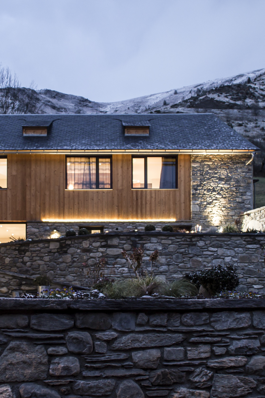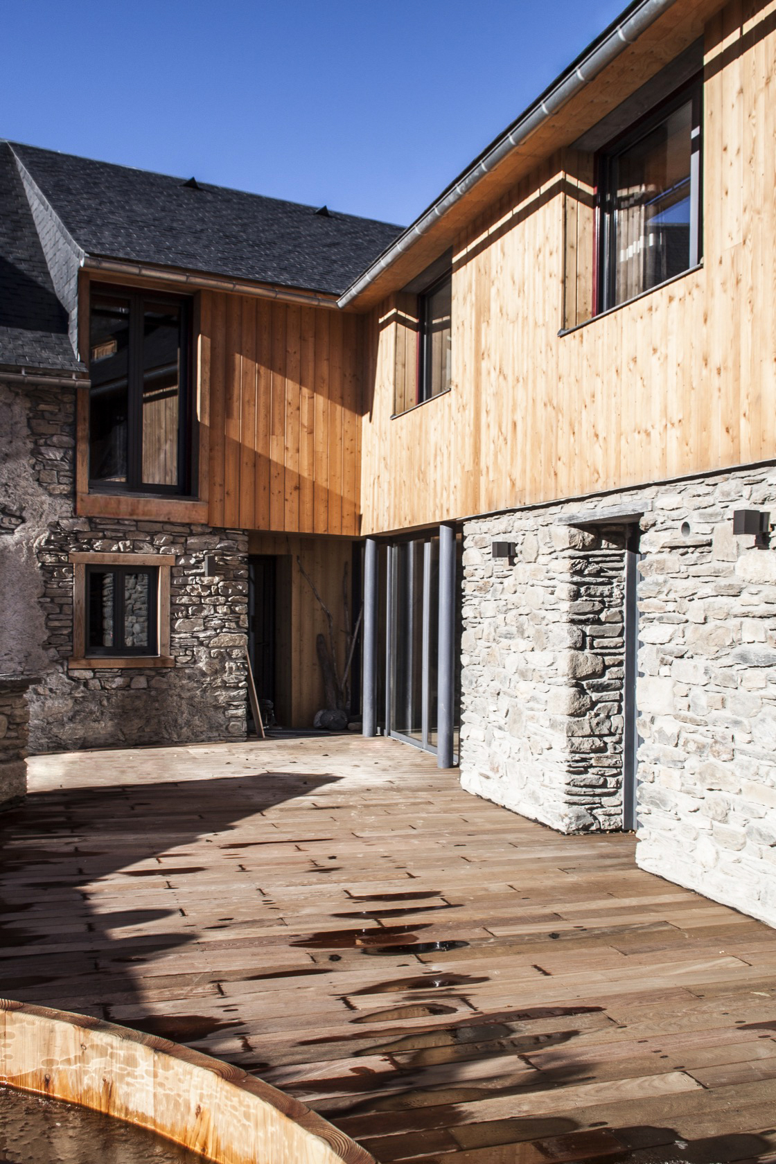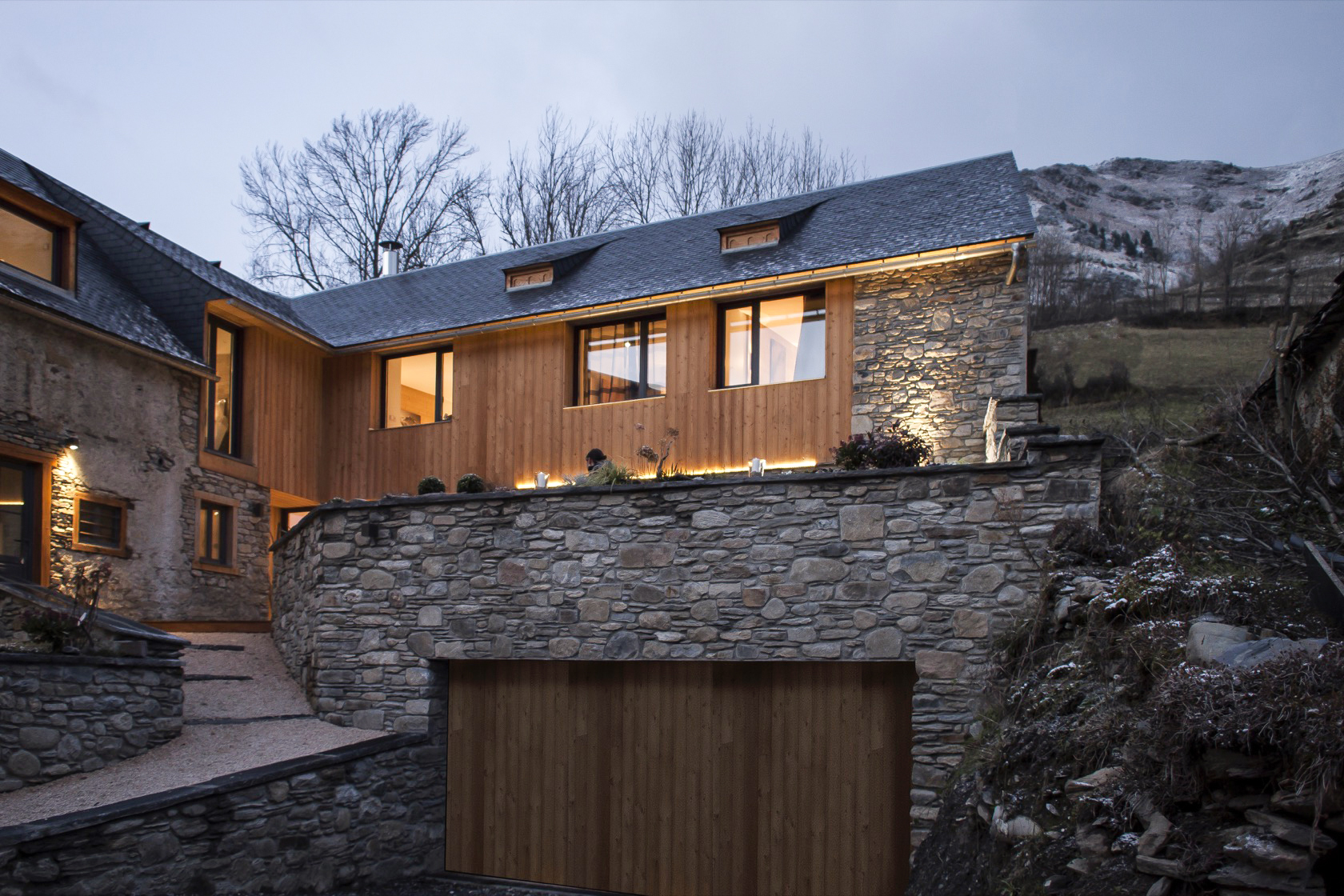 Cet ancien corps de ferme, traditionnel en vallée d’Aure, était constitué d’un corps d’habitation et d’une grange en forme de L orientée Sud-Est. L’ancienne habitation ayant déjà été réhabilitée, il s’agissait alors de transformer la grange en vue d’accueillir des hôtes.