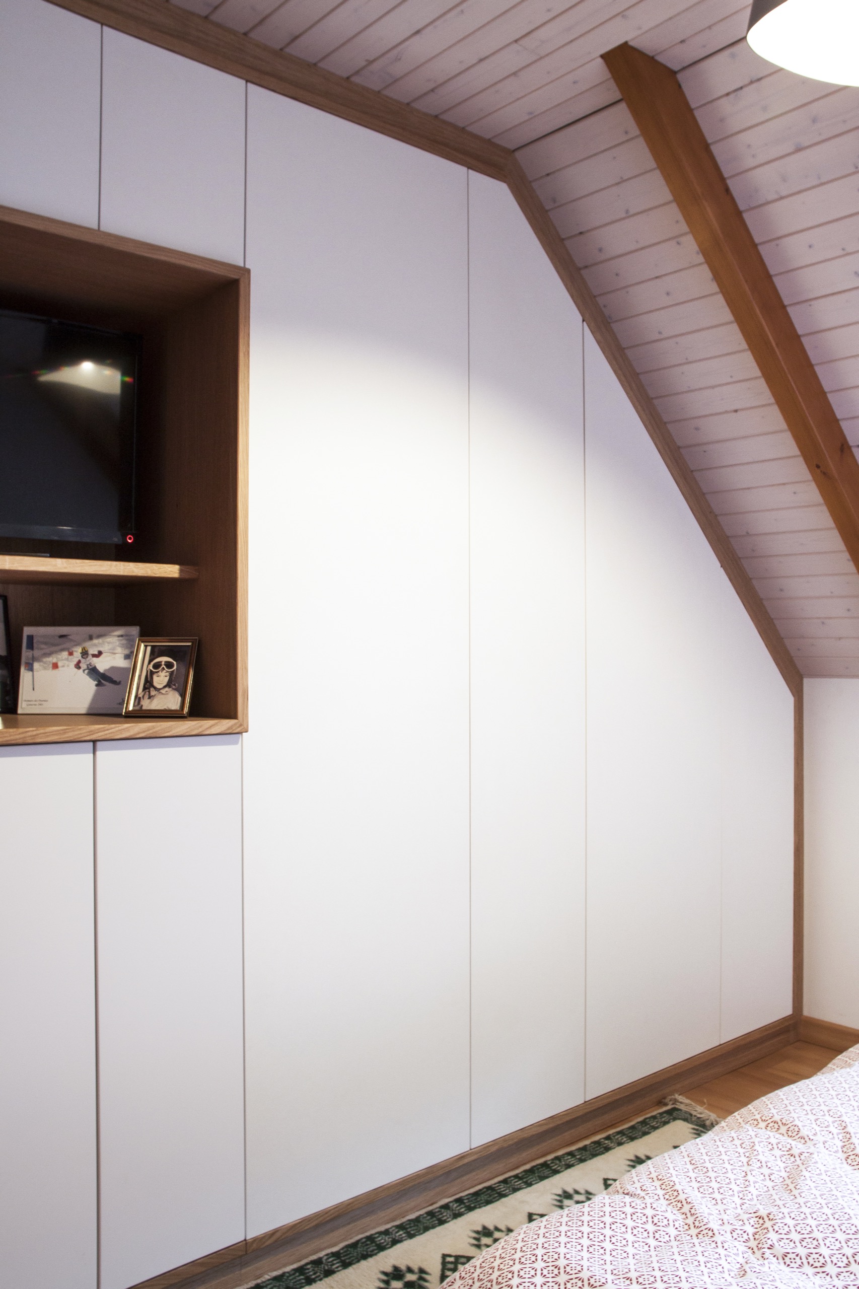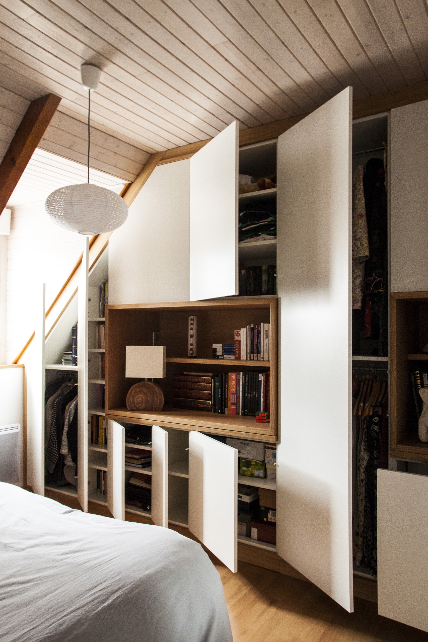 La demande du maître d’ouvrage consistait en la création de deux penderies pour deux chambres, afin de limiter les autres meubles et de donner la sensation de plus d’espace.